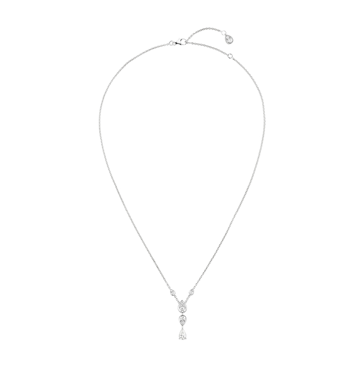 Joséphine Ronde d’Aigrettes pendant in white gold, set with a pear-shaped diamond of approximately 0.50 carat and brilliant-cut diamonds.