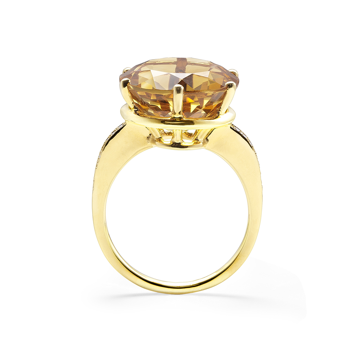 Durán Ring Big Stones Collection in yellow gold, citrine and diamond line