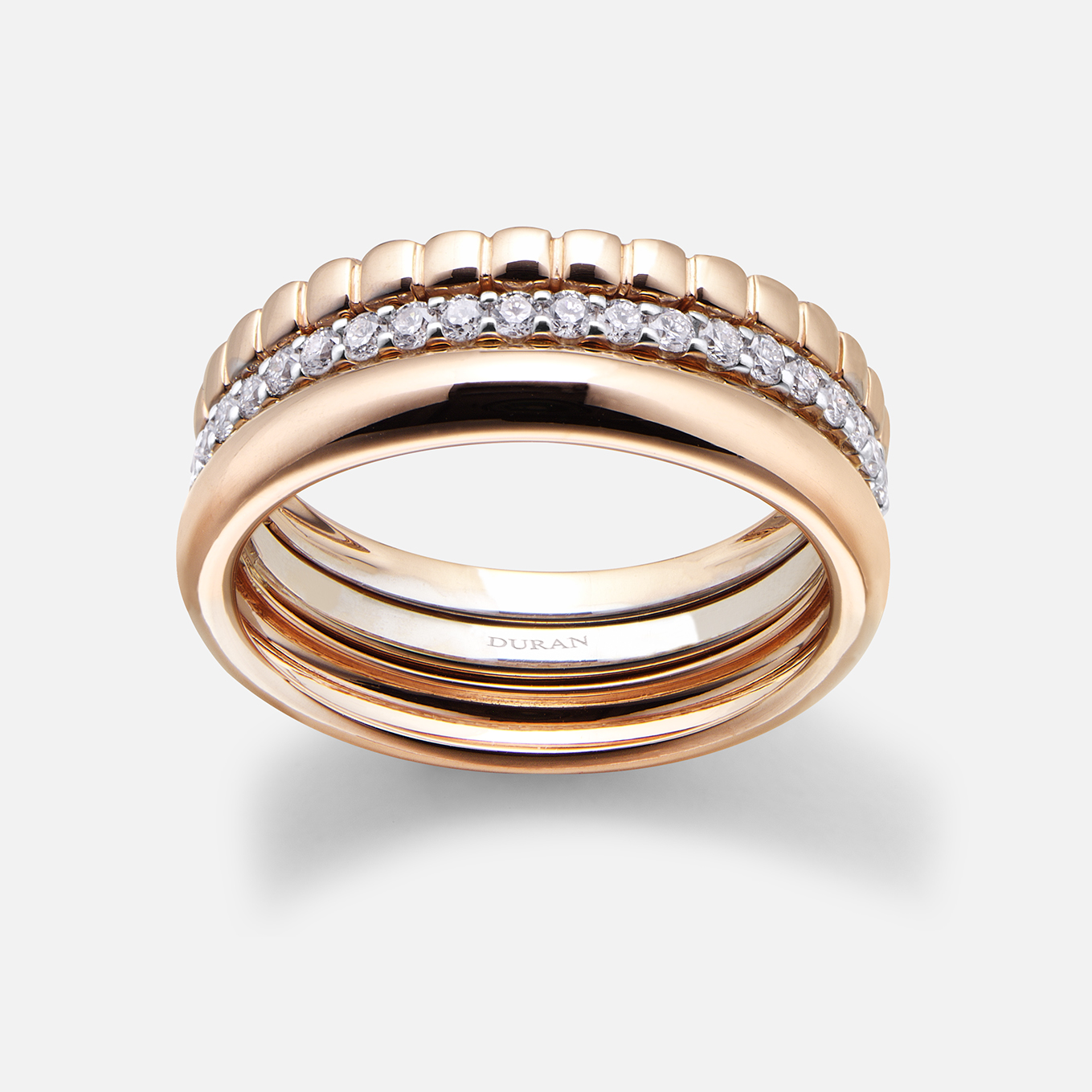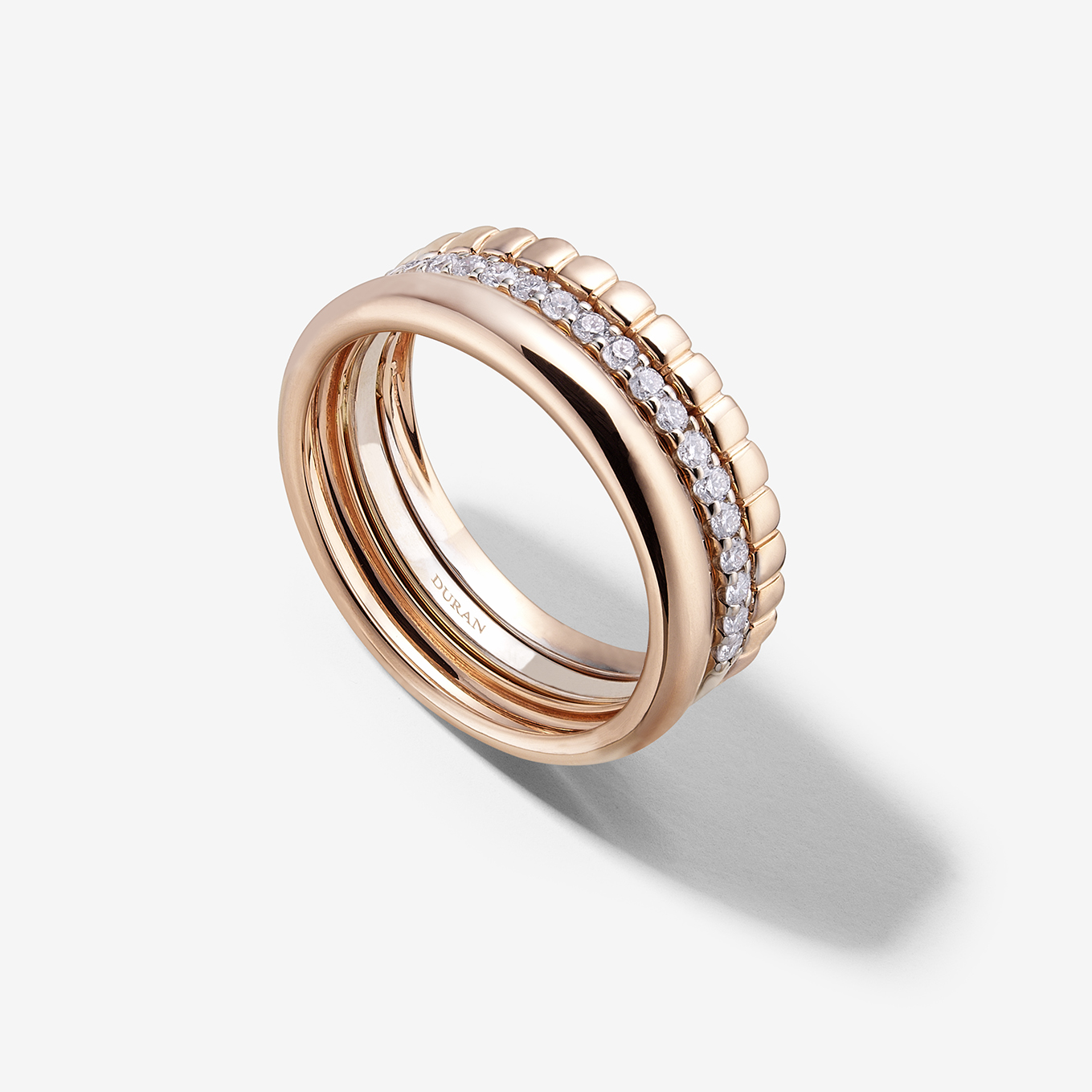 Durán Ring Alianza Doble Collection in rose and white gold combined with brilliant-cut diamonds