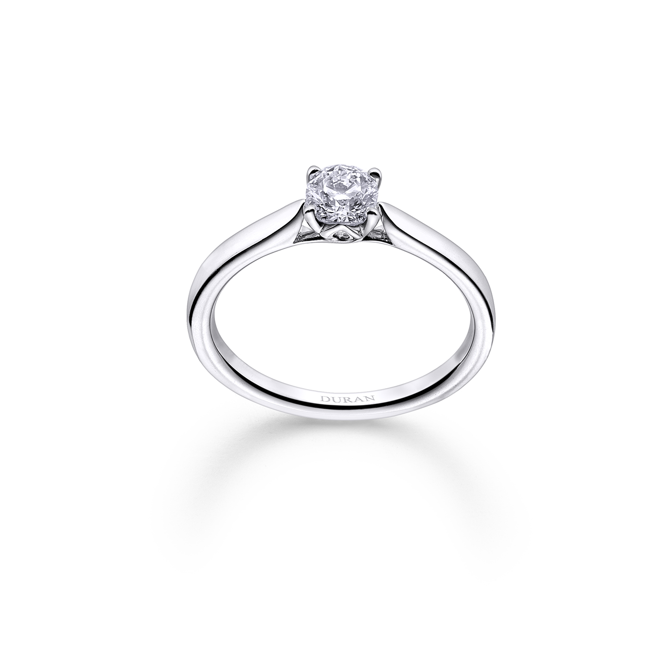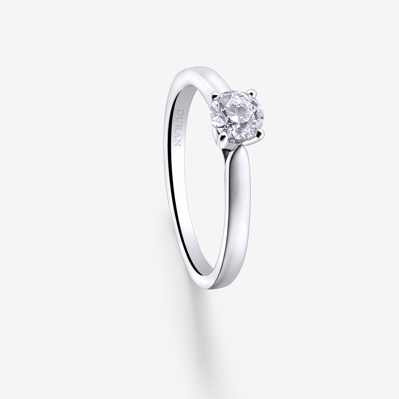Durán Engagement Ring Solitaires Collection, Camelia model, in white gold with a central brilliant-cut diamond of 0.35cts set in 4 claws