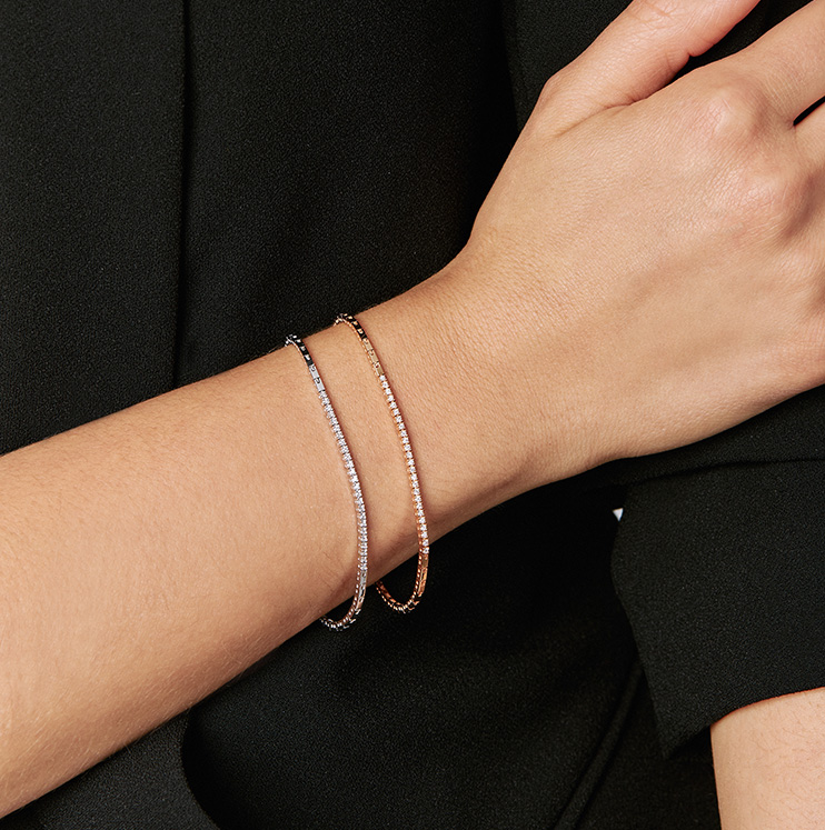 Durán Riviere Diamonds Bracelet Tenis Collection in rose gold with brilliant-cut diamonds in front set in claws.