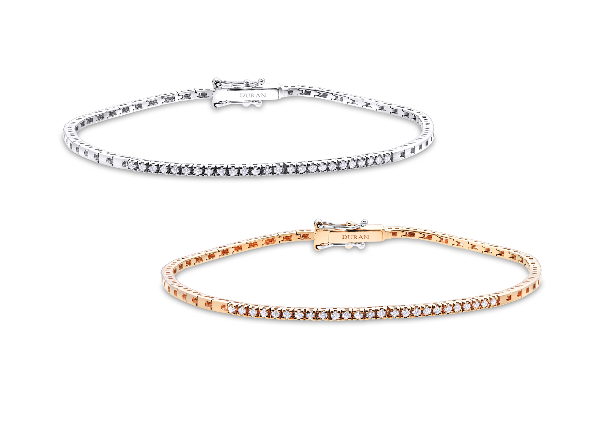 Durán Riviere Diamonds Bracelet Tenis Collection in rose gold with brilliant-cut diamonds in front set in claws.