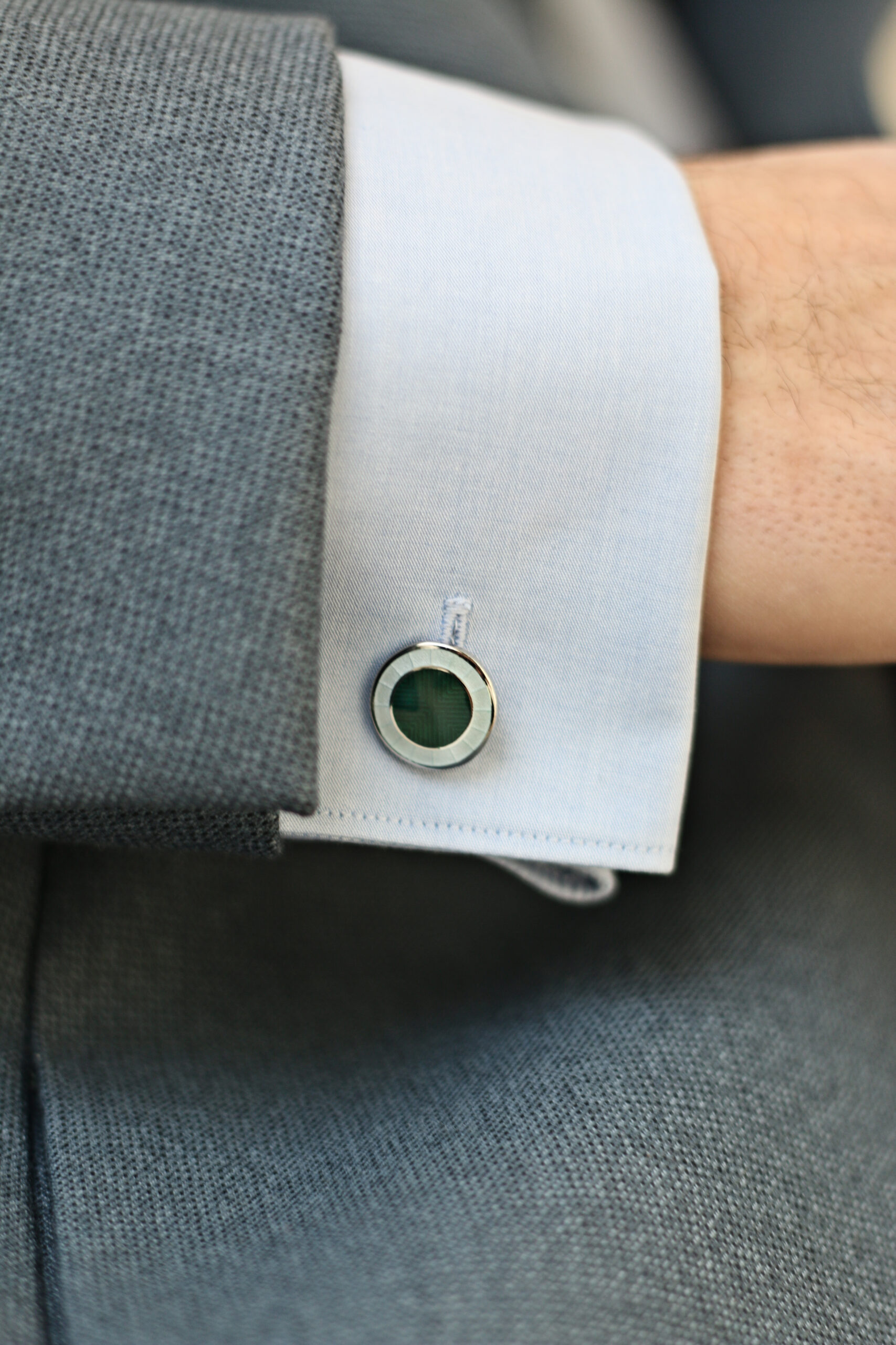 Durán Cufflinks Savile Row Collection in round silver with green / grey combined color enamel