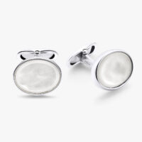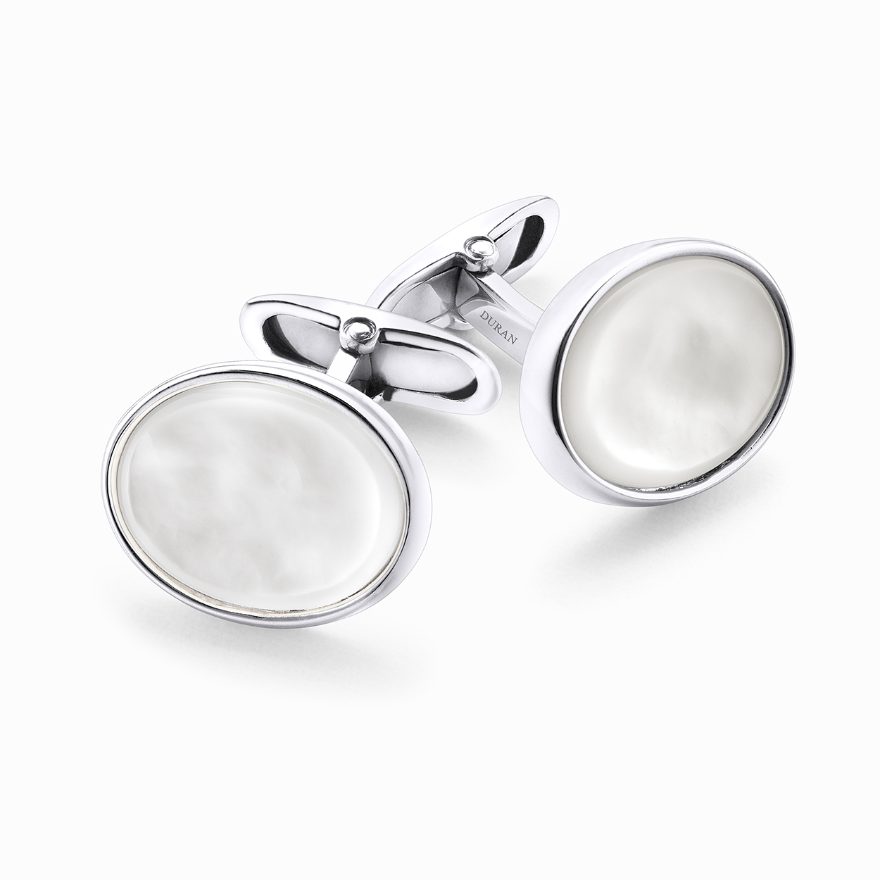 Durán Cufflinks Oxford Collection in silver with oval shape and flat front in Mother of Pearl