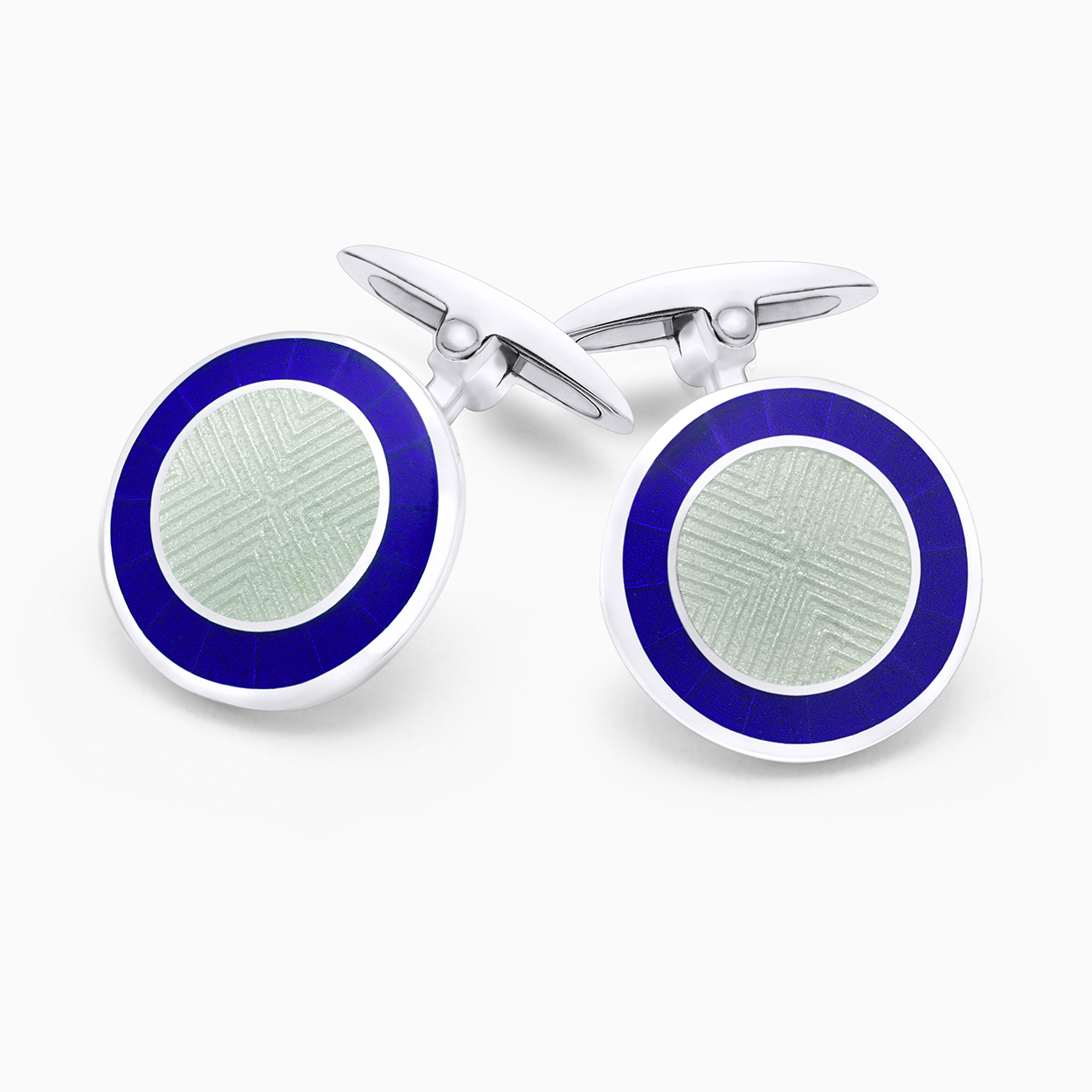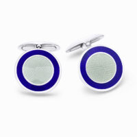 Durán Cufflinks Savile Row Collection in round silver with white / blue combined color enamel