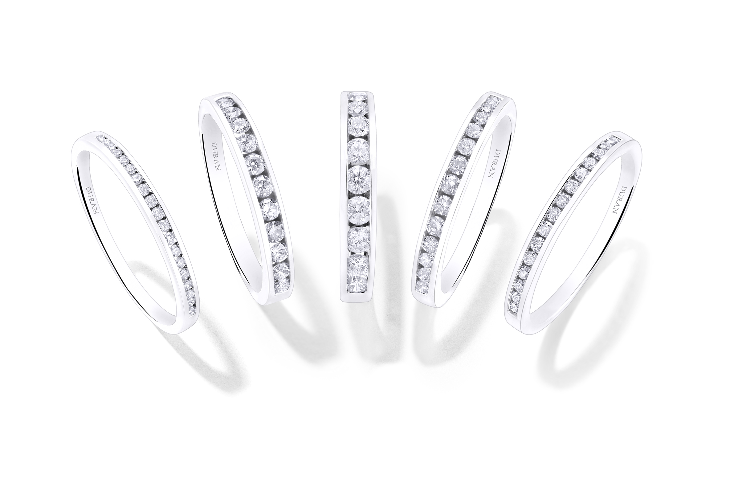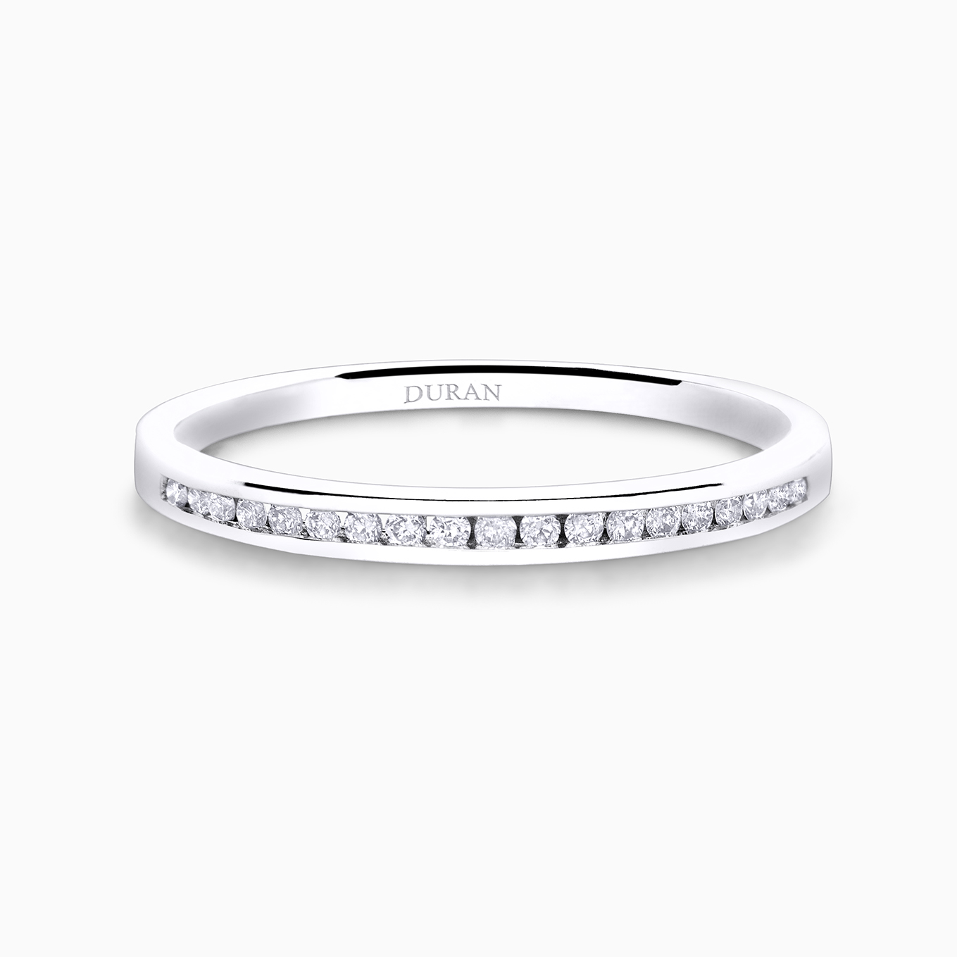 Durán Wedding Band Medias Alianzas Collection in white gold with brilliant-cut diamonds set in lane.