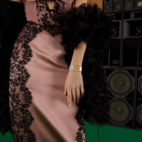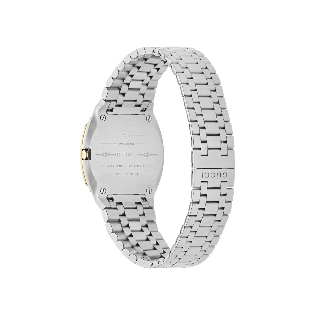 Stainless steel and 18k yellow gold plated multi layered case, golden brass dial with Interlocking G motif, five links stainless steel bracelet