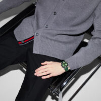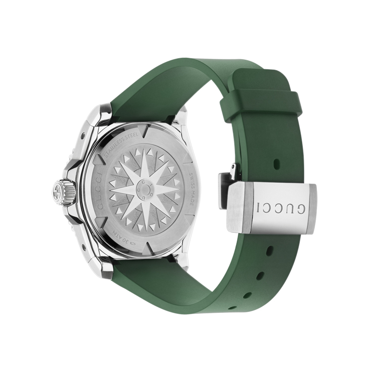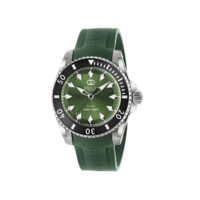 40 mm stainless steel case, green dial, ceramic bezel, rubber bracelet, self-winding movement.