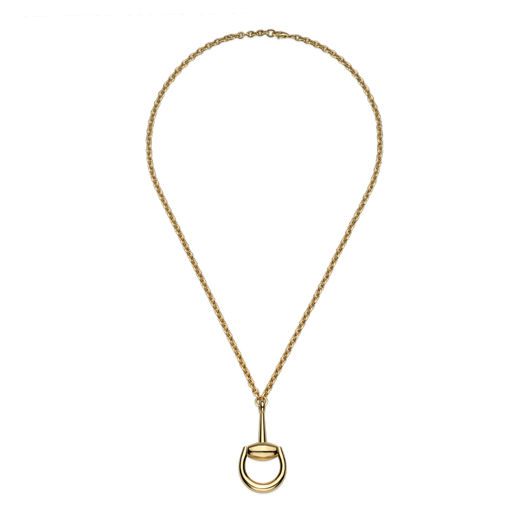 Horsebit necklace with maxi pendant in 18kt yellow gold