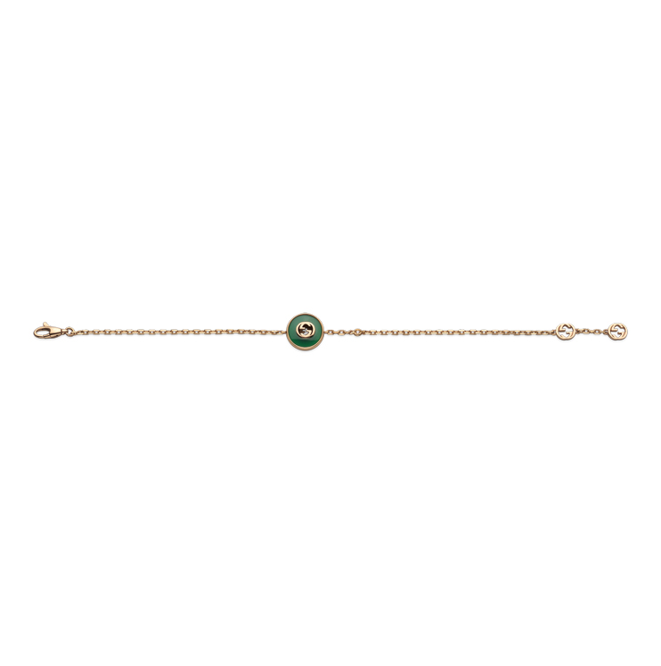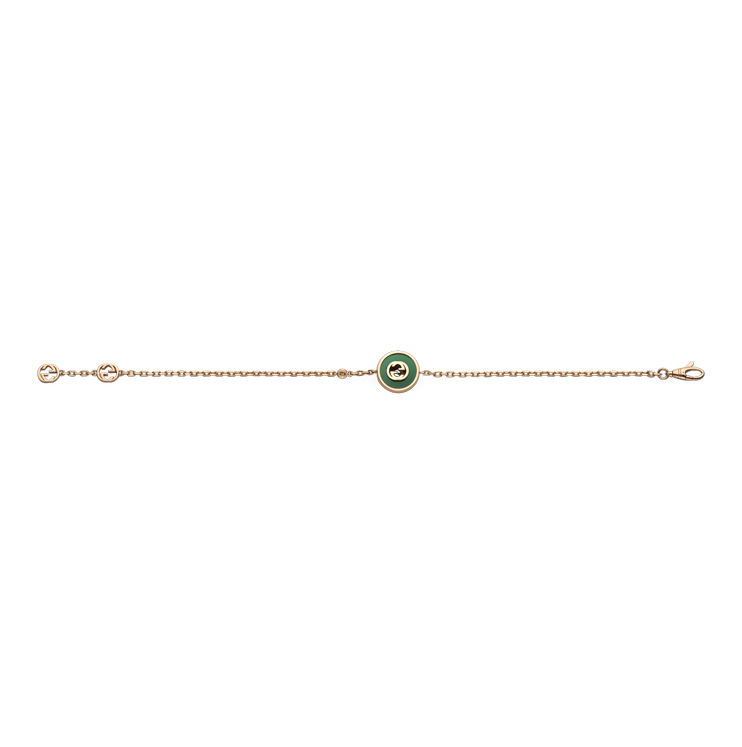 Gucci Interlocking bracelet in 18kt pink gold, green agate and diamond
