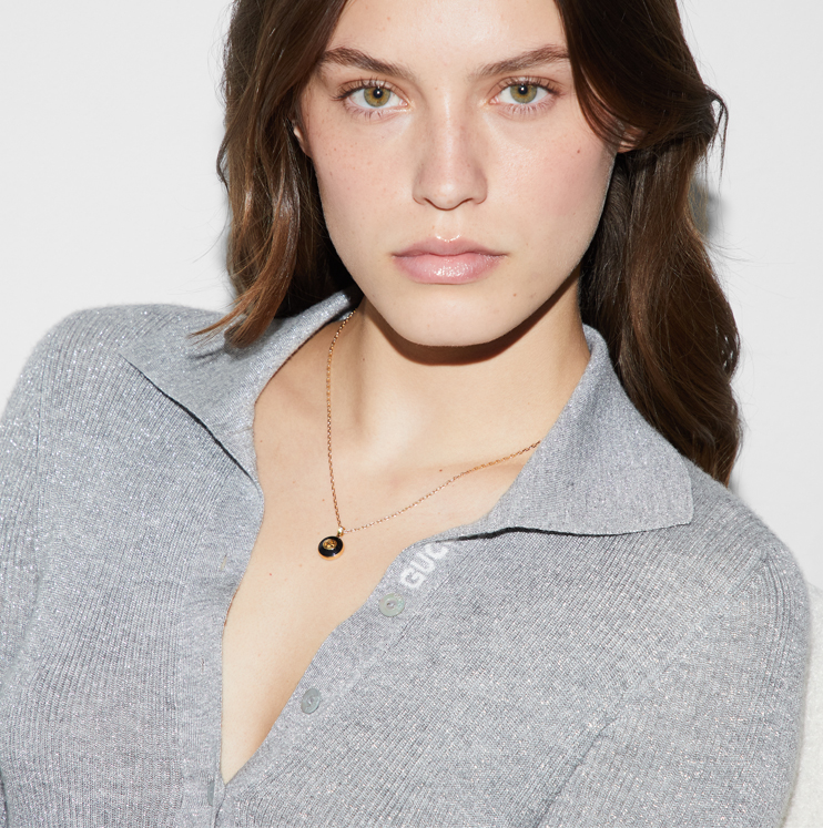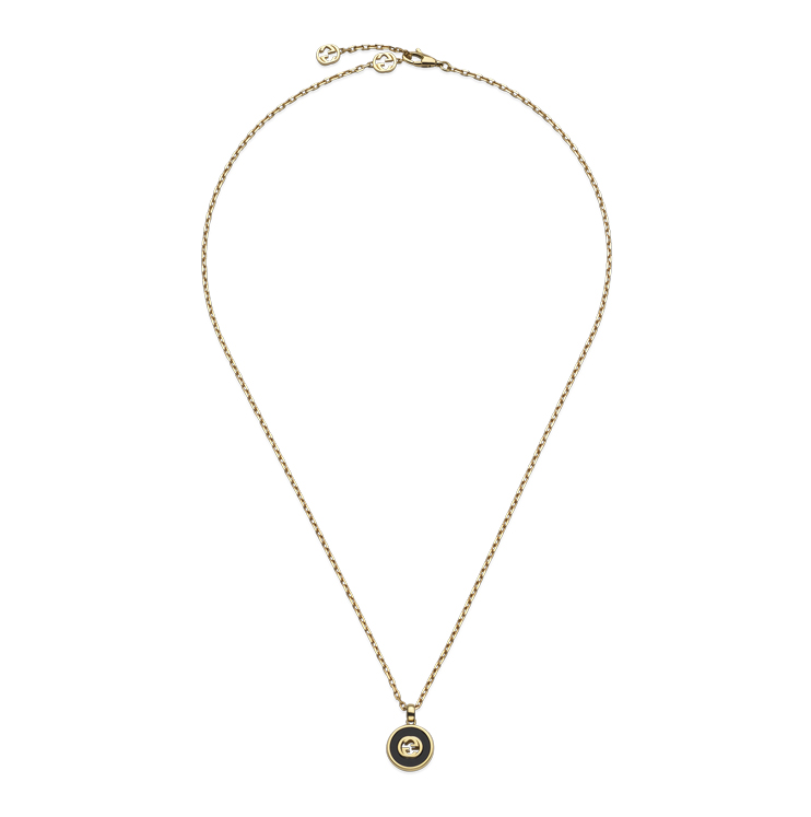 Gucci Interlocking necklace in 18kt yellow gold, onyx and diamond