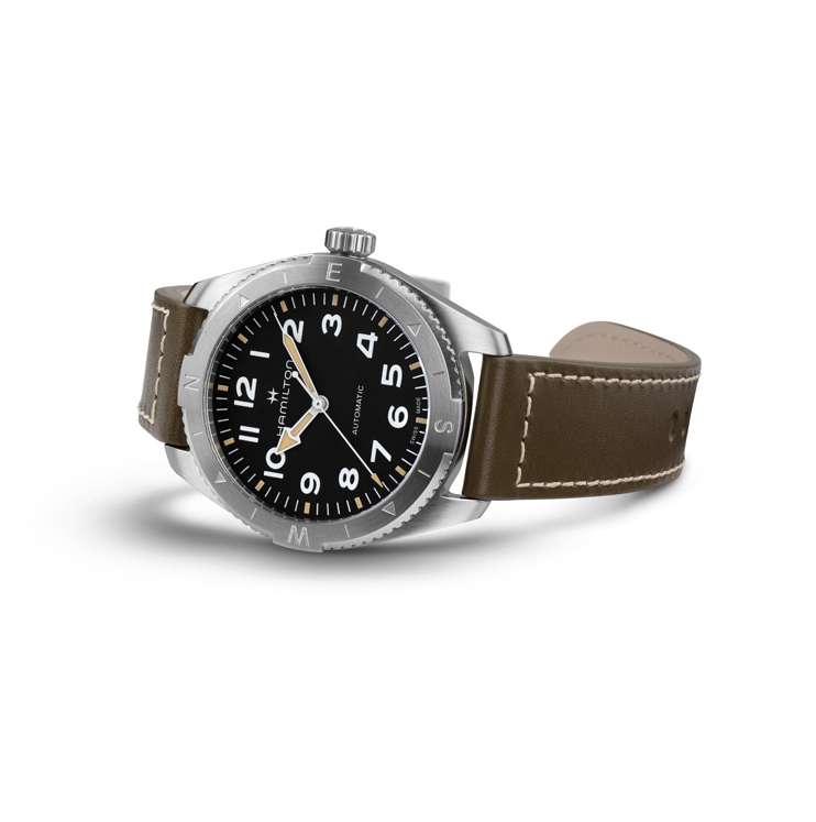 Gear up for the great outdoors with the Khaki Field Expedition, an all-terrain adventure watch with a compass design enabling you to navigate your adventure with the help of the sun.