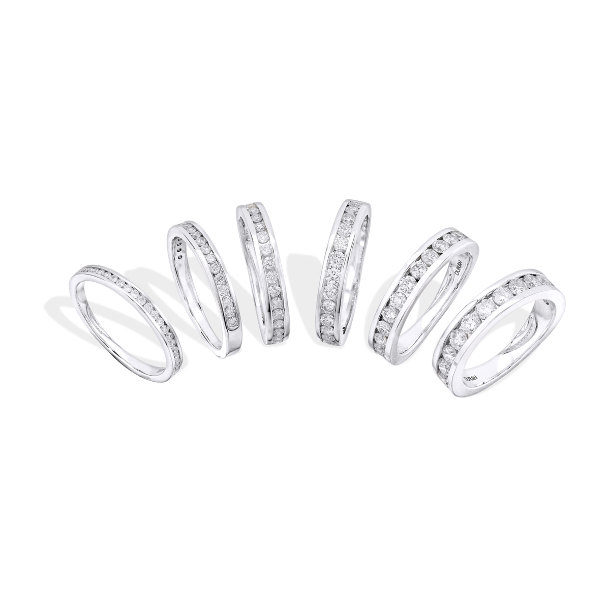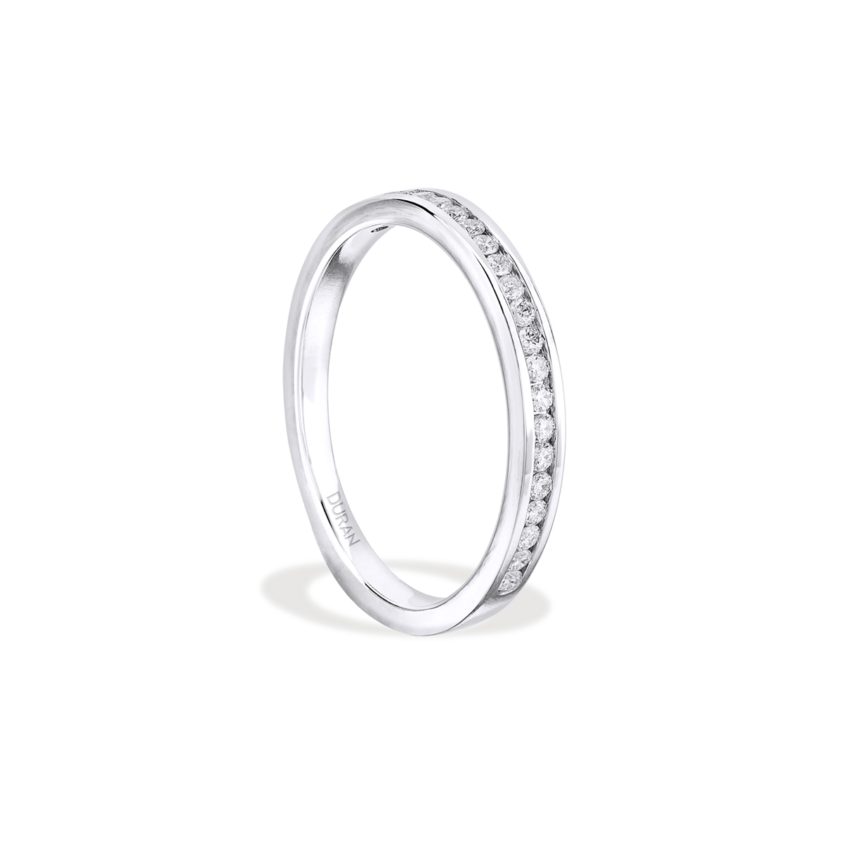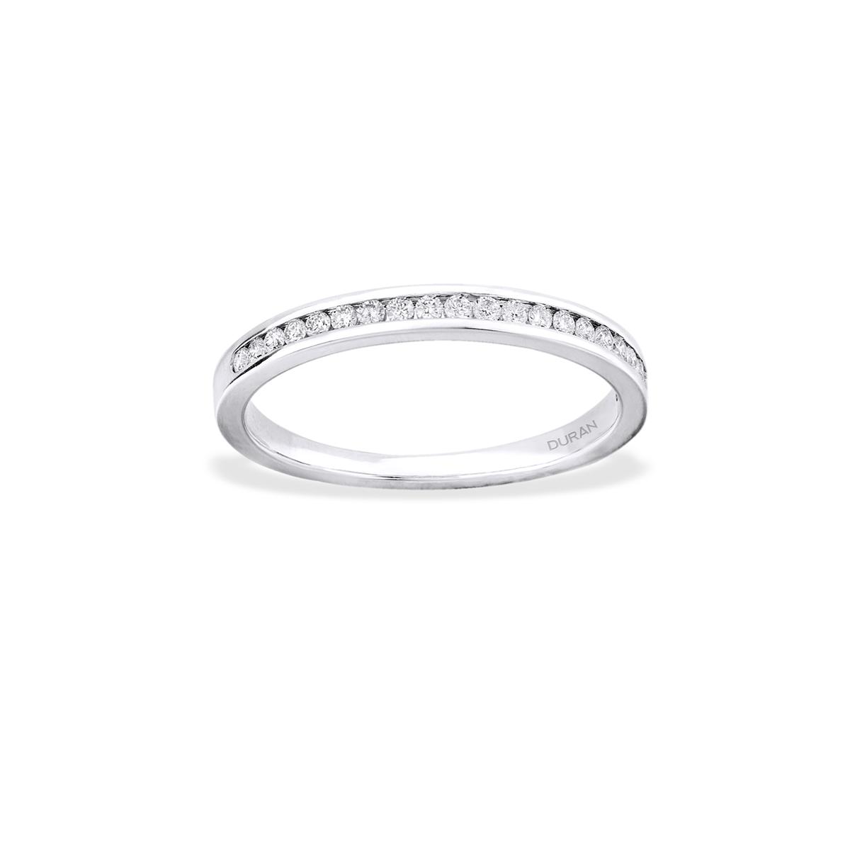 Alianza de Compromiso Durán de la Colección Medias alianzas en oro blanco con diamantes talla brillante en carril.