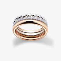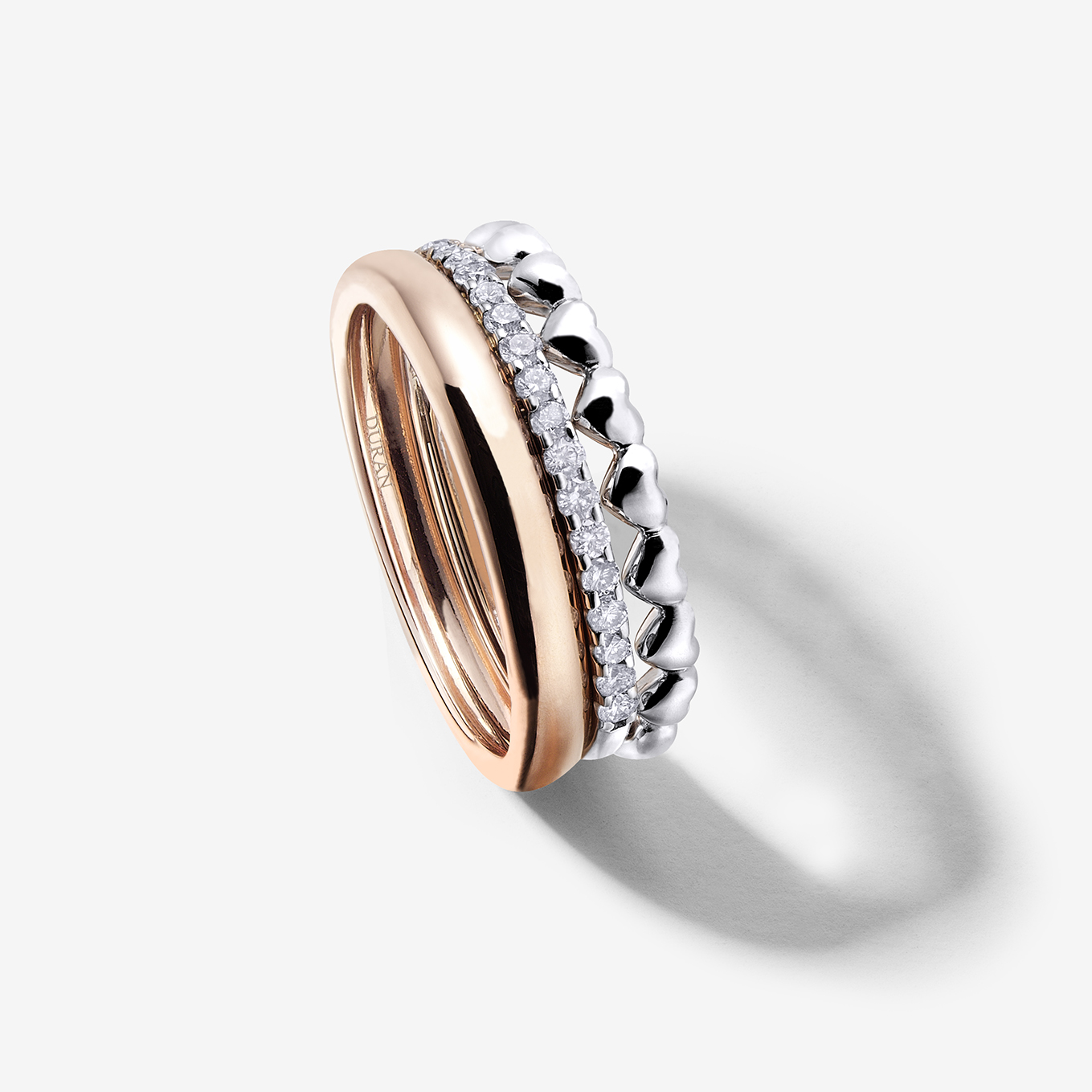 Anillo Durán de la Colección Alianza Doble en oro rosa y oro blanco combinado con diamantes talla brillante.