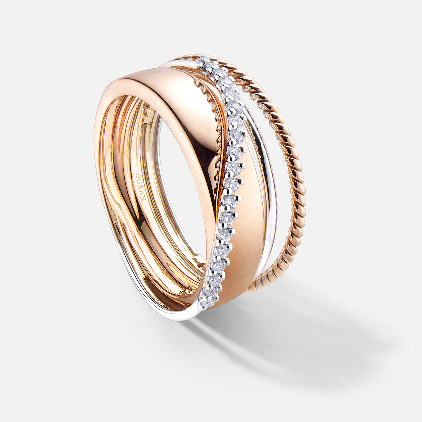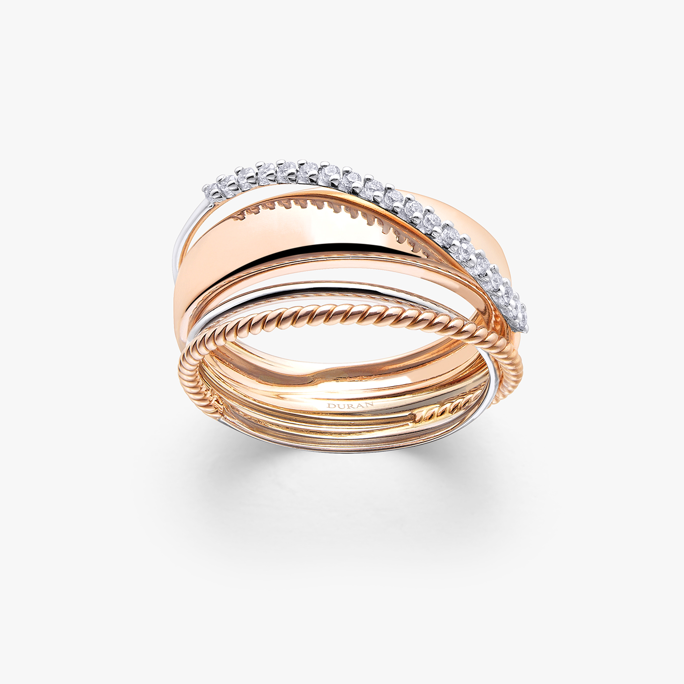 Anillo Durán de la Colección Cintas con aros en oro rosa, oro blanco y diamantes talla brillante