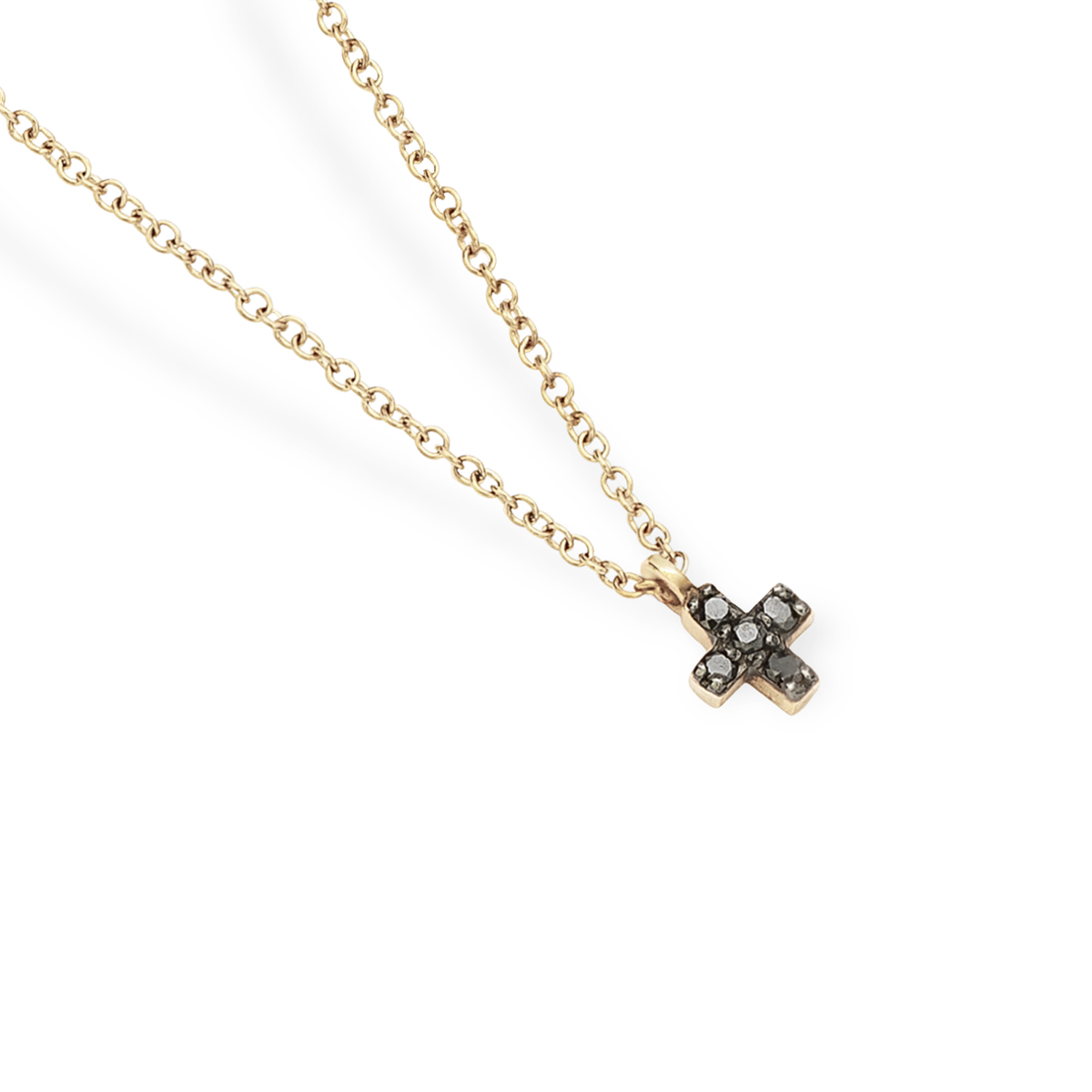 Colgante Durán Mini Cruz en oro rosa y brillantes negros