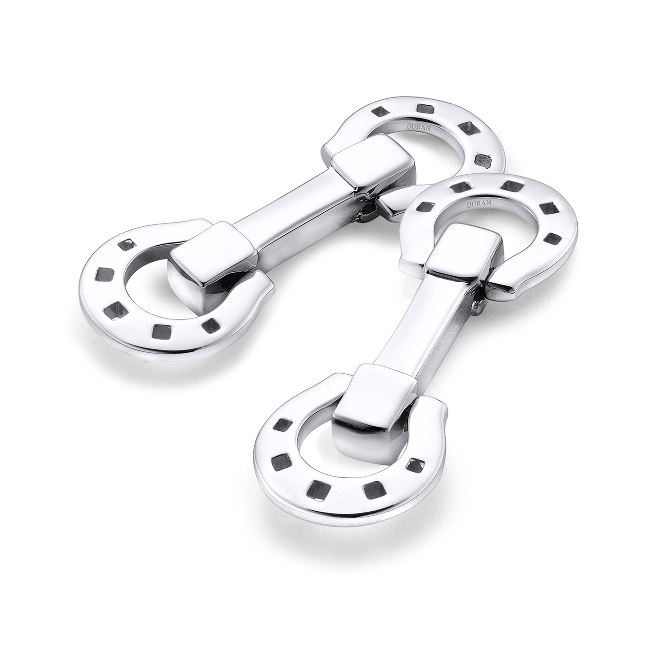 Gemelos Durán de la Colección Bridge en plata con forma de barra y extremos en herradura plegables