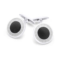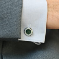 Gemelos Durán de la Colección Savile Row en plata redondos con esmalte de color combinado verde / gris