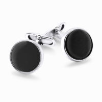 Gemelos Durán de la Colección Oxford en plata con forma redonda y frente plano en Onix
