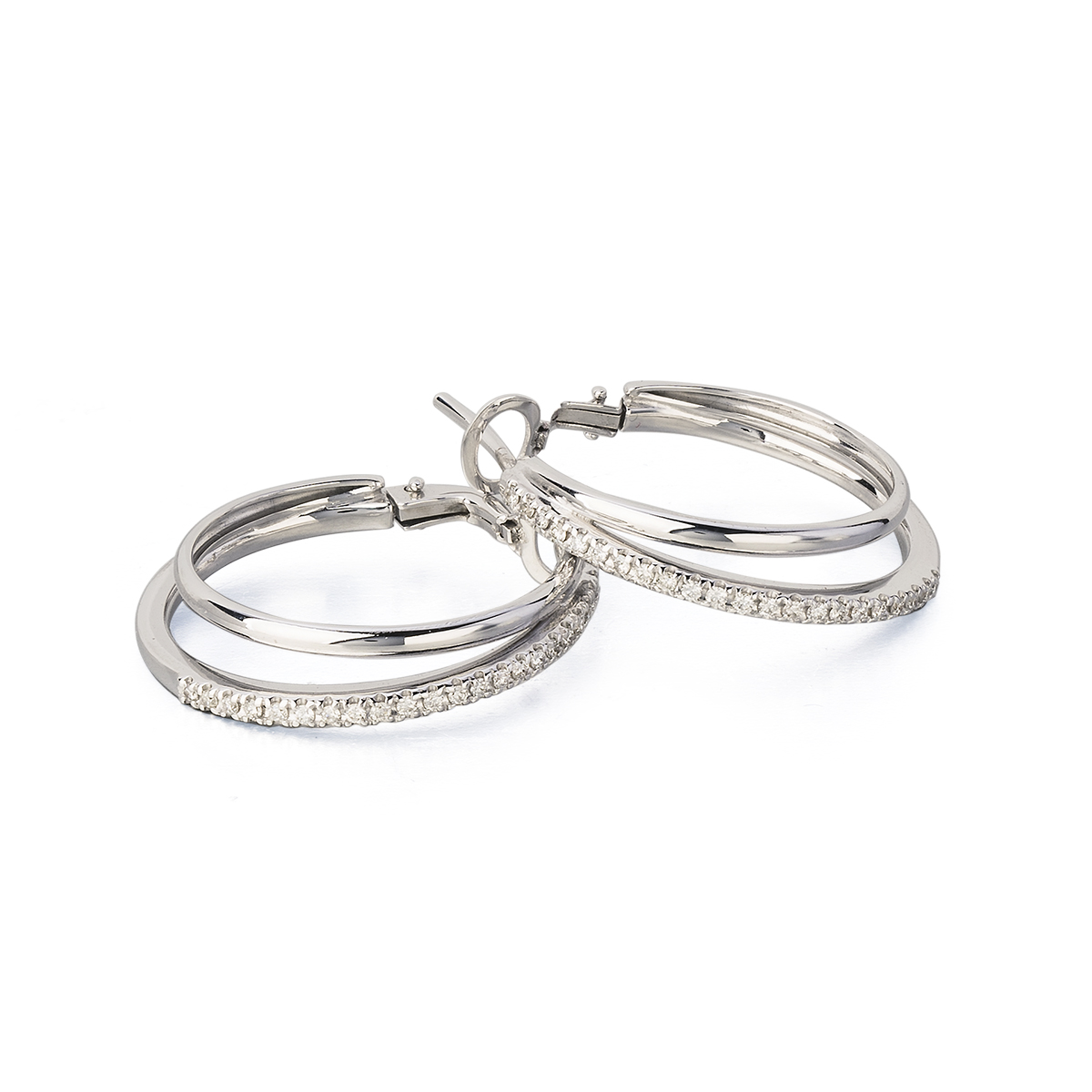 Pendiente de Aro doble Durán de la Colección Criollas en oro blanco con diamantes talla brillantes en garra 0,28ct