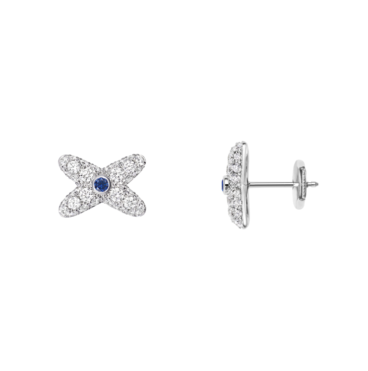 Pendientes Jeux de Liens en oro blanco, engastados con zafiros y diamantes talla brillante.