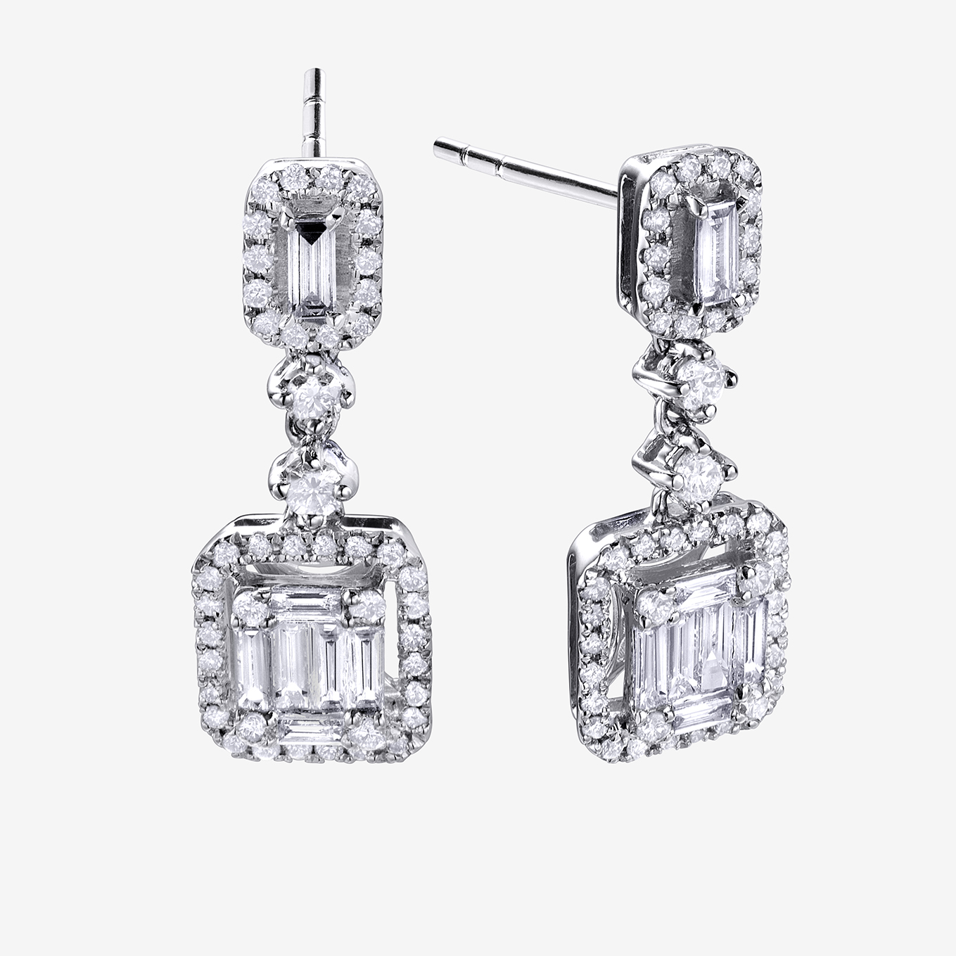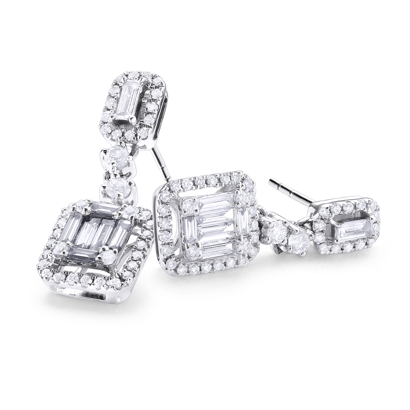 Pendientes Durán de la colección Shine en oro blanco y diamantes talla brillante y baguette 1.00 cts