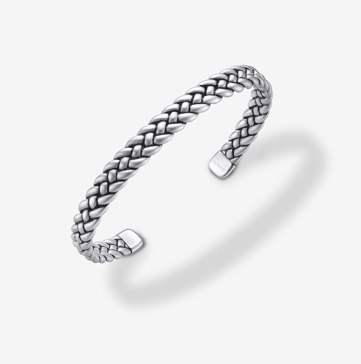 Pulsera abierta Durán de la Colección Uomo de plata trenzado interior/exterior